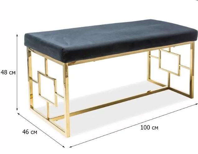 Вес, кг: 10 / Высота (см): 48 / Гарантия, мес.: 12 / Глубина (см): 46 / Количество коробок: 1 / Материал каркаса: металл / Материал сидения: вельвет / Необходимость сборки: да / Размер упаковки 1: 1,02/0,49/0,19 / Страна производитель: Китай / Цвет: черный/золотой / Ширина (см): 100