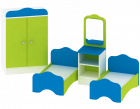В комплект входят: шкафчик с полками для белья, трюмо с настоящим зеркалом и две кроватки. Габаритные размеры: Шкаф 550х340х900 мм. Трюмо 300х270х900 мм. Кроватка 700х420х400 (2 штуки) мм. Материал: ЛДСП 16 мм. Кромка ПВХ. Цвет изделия по согласованию.