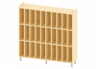 Размер (ШхВхГ): 1376х1400х323 мм. Внутренний размер каждой ячейки 12х32х40 см. Материал: ЛДСП 16 мм. Кромка ПВХ 0,4 и 2 мм. Опоры регулирумые металлические. Цвет изделия по согласованию.