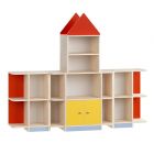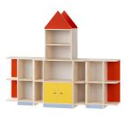 Стенка функционально используется для хранения игрушек и пособий в дошкольных учреждениях. Имеет крепления стеллаж к стене.