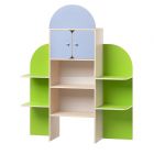 Стенка функционально используется для хранения игрушек и пособий в дошкольных учреждениях.