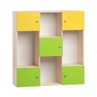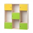 За счет оригинальной конструкции может служить украшением группы. Имеет закрытые и открытые полочки. Яркая цветовая гамма делает ее привлекательной, особенно для младших детей. Материал исполнения: ламинированная ДСП толщиной 16 мм, цвет — дуб молочный размер 1200х320х1300 мм, отделка кромкой ПВХ. Цветовое разрешение возможно по желанию заказчика.
