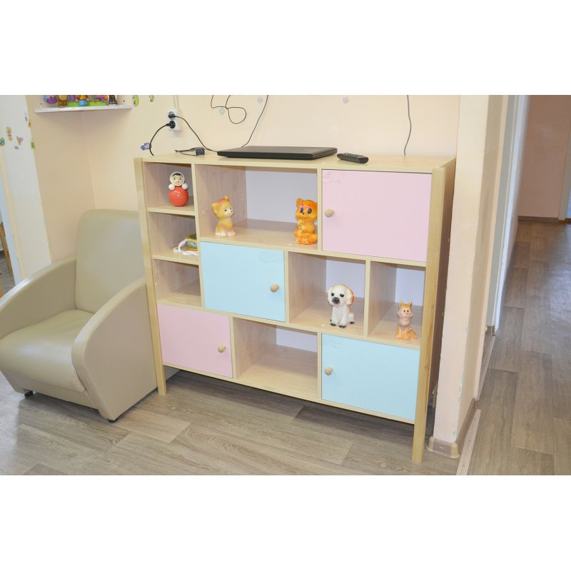 Стильный и функциональный стеллаж станет отличным решением для обустройства игровой зоны детского сада. Благодаря нежному и приятному дизайну, изделие отлично впишется в интерьер. На удобных полочках можно хранить различные игрушки, книжки и различные элементы декора. Изделие изготовлено из экологичных материалов. Деревянный каркас покрывается лаком для предотвращения получения занозок. Виды ручек: