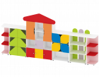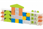 Конструкция состоит из 6-ти отдельных модулей, которые можно менять местами. Фигурные панели фасадов напоминают очертания бабочки, забора, елочки. , мм, кромка ПВХ 2 и 0,4 мм, Материал: ЛДСП 16 мм , Задние стенки — ДВПО 3,2 Размеры (ШхВхГ): 3810х1840х420 мм. Кромка — в единой цветовой гамме с цветом ЛДСП.