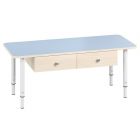 Двухместный детский прямоугольный стол для занятий и приема пищи, на регулируемых металлических ножках белого цвета. Изготовлен из ЛДСП 16 мм ,все торцы обработаны кромкой ПВХ. Гладкая поверхность и закругленные углы гарантируют высокую безопасность.