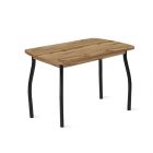 Изделие состоит из столешницы, царгового пояса и ножек, прикрепленных к столу через царговый уголок. Столешница изготовлена из ЛДСП толщиной 22 мм. Края столешницы закруглены и облицованы ударопрочной кромкой ПВХ-2,0 мм. Для увеличения длины стола лицевые части столешниц раздвигаются в противоположные стороны при помощи раздвижного механизма и в образовавшееся между столешницами расстояние помещаются внутренние части столешницы, соединённые секретерными петлями, позволяющими двум сложенным друг на друга столешницам раскладываться встык без зазора в одной плоскости.