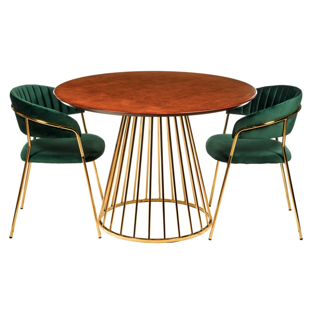 Стол Liverpool диам.110см, шпон орех с золотистыми ножками