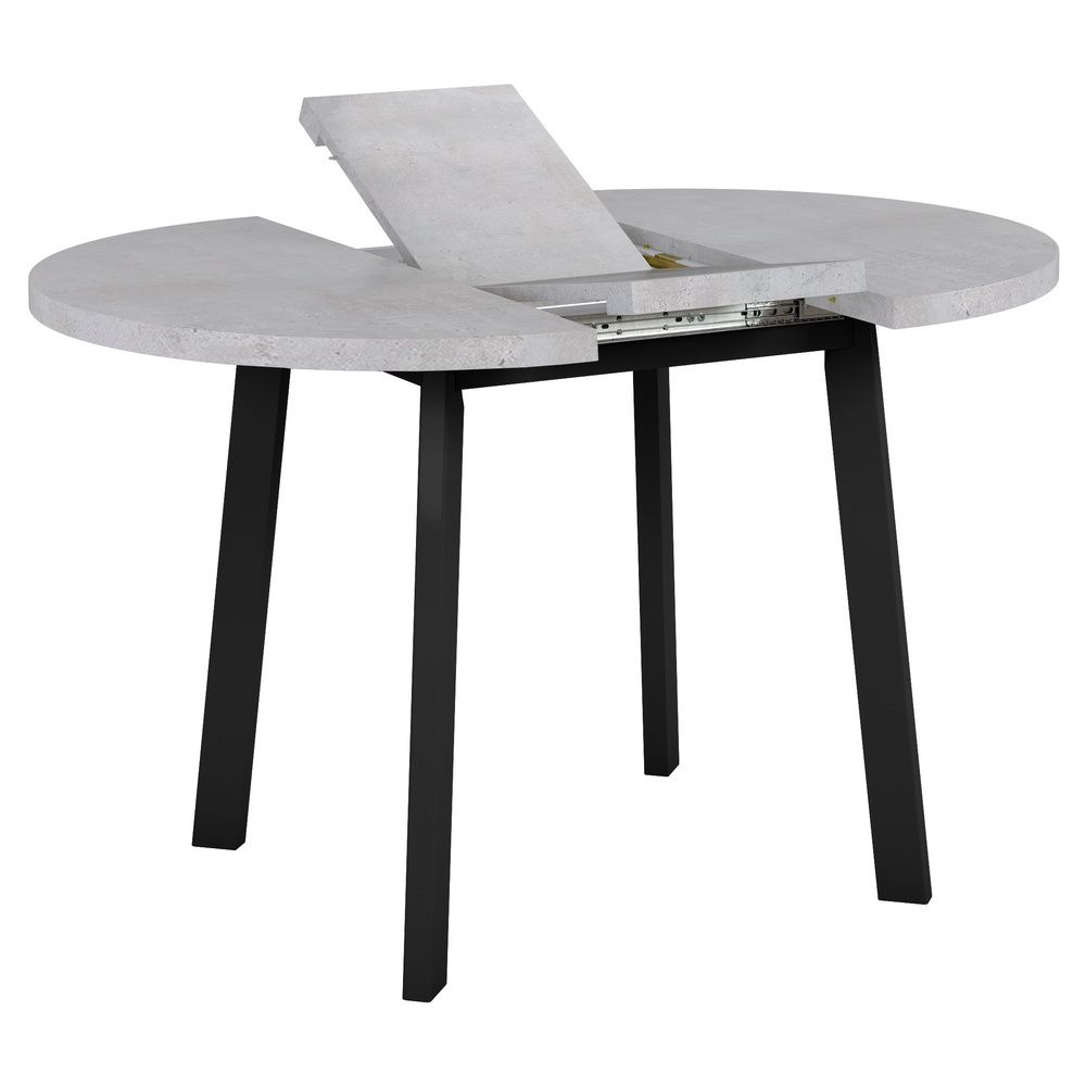 Стол Next круглый раскладной 90-120x90x76,5см, Бетон Лайт, чёрный