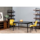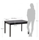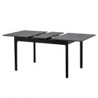 Столы с раздвижной прямоугольной столешницей. Столешница и вставка из ЛДСП толщиной 18 мм, оклеены износостойкой ABS кромкой. Опоры из натурального дерева. Царговый пояс из фанеры. Механизм раздвижения "BAUT" с автоматическим подъемом вставки. В контрастных цветовых вариантах вставка изготавливается в цвет царг и опор. Длина:125см Макс.длина: 155см Ширина: 85см Высота:75см Цвет: Угольный камень Цвет ножек: чёрный