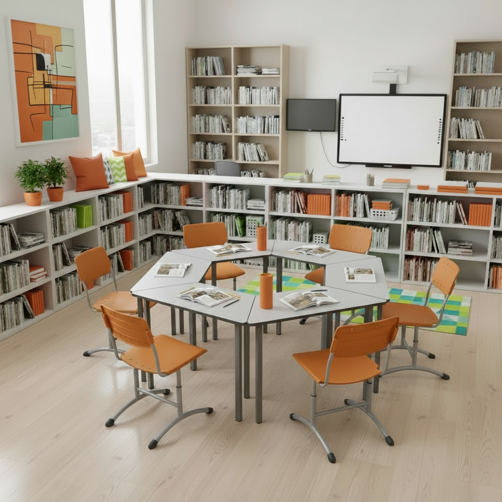 TR-004w Стол Трапеция "Точка Роста" (ЛДСП белый/Кромка красный)