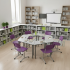 Каждый трапецевидный стол элемент состоит из столешницы и четырёх отдельных опор. Столешница изготовлена из ЛДСП толщиной 22мм. Края столешницы имеют закругления радиусом 30 мм. Столешница облицована ударопрочной кромкой ПВХ 2,0мм.
