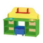 Столешница изготовлена из ЛДСП 16 мм с антибликовым влагостойким покрытием, углы закруглены. Кромка ПВХ. Стол позволит детям удобно играть с песком, водой и иными сыпучими и жидкими материалами. Стол имеет открытые полки для хранения игрушек и дидактического материала.