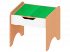 Габаритный размер ШхГхВ 600х600х550мм Материал ЛДСП 16 мм Высота от пола до ящика 365мм. Кромкой ПВХ 2 и 0,4мм. Стол имеет 2 ящика. На столе расположены 4 пластины для установки деталей Лего либо аналог, размером 250х250мм каждая.