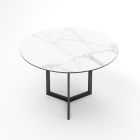 Круглый стол BENZ - отличается своей дизайнерской опорой и изысканной керамической столешницей. Керамическое покрытие стола не боится влаги, устойчиво к перепадам температур, на нем можно резать продукты без использования кухонной доски. Тест с падающей свечой и горящей спичкой также не повредил стол. Рисунок каждой столешницы уникален. Белая с серо-бежевыми прожилками.В хаотичных узорах можно найти разнообразные формы, либо воспринимать их как абстракции. Дизайнерская опора сделана из стали - это долговечный и крепкий материал