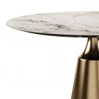 Коллекция обеденных столов Lucas - одна из самых популярных. Включает в себя различные варианты и формы обеденных столов, для персонализации своей собственной дизайнерской столовой. Основание состоит из центрального конусного ствола, выполненного из нержавеющей стали, массивный внешний вид которого облегчается металлическим покрытием нитрид титана цвет золото и соединением с узкой и отступающей столешницей, как бы напоминающей длинную элегантную шею, поддерживающую столешницу. Коллекция включает круглый, овальный, прямоугольный керамический стол Lucas с матовым или глянцевым покрытием и версию со столешницей из шпона. Столешница выполнена из МДФ 19 мм, керамика толщиной 6 мм. Ее органический и натуральный внешний вид подчеркивает путь бренда к экологичному дизайну, который создается из натуральных материалов с использованием методов с низким энергопотреблением.