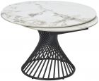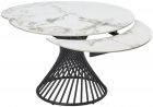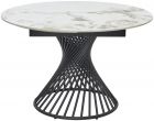 Столешница Стол круглый раскладной Tower (120+35+35) керамический, с двумя торцевыми вставками. Рисунок вставок может не совпадать и не являться продолжением рисунка основной столешницы. Монолитная глянцевая керамика, толщина столешницы 11 мм, не царапается, не впитывает загрязнения, термостойкая. Каркас Основание стола - металл, цвет – черный.