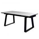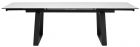 Столешница Итальянская матовая керамика в цвете белый мрамор с отражающими свет прожилками, толщина столешницы 13 мм (3 мм керамика + 10 мм стекло), не царапается, не впитывает загрязнения, термостойкая. Двухсторонняя торцевая система раскладывания, две независимые вставки по краям по 40 см позволяют увеличить длину столешницы на 220 или 260 см при необходимости. Рисунок вставок может не совпадать и не являться продолжением рисунка основной столешницы. Каркас Основание стола - металл, цвет – черный.