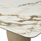 Столешница Нераскладной стол onx с итальянской керамикой, толщина столешницы 13 мм (3 мм керамика + 10 мм стекло), не царапается, не впитывает загрязнения, термостойкая. Каркас Основание стола - металл, цвет – шампань, продуманный дизайн конструкции способствует комфортному размещению за столом без неудобств ногам.