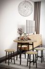 Обеденный стол в интерьере кухни-основной элемент дизайна. Стиль стола должен соответствовать выбранному интерьерному направлению. Стол "Медисон»" с круглой столешницей безусловно будет центром композиции интерьера помещения и дизайнерским акцентом. В тандеме с металлическими ножками стол прослужит долгие годы, а круглая столешница обеспечит безопасную обстановку в помещении. Обеденный стол «Медисон»» отлично будет смотреться в комбинации с табуретами в этом же стиле. МАТЕРИАЛЫ: МДФ, металл УПАКОВКА: 82*82*6,5 см, 1 место ВЕС: 12,5 кг Цвет: дуб сонома