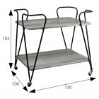 Сервировочный столик Эстер станет идеальным решением для Вашей квартиры или дома. Металлический каркас обеспечит прочность и устойчивость, а деревянная столешница из МДФ, покрытого плёнкой, гарантирует долгий срок службы. Вместительная полка позволяет разместить множество вещей, от книг и журналов, до предметов декора. Воплотите в реальность любые интерьерные решения вместе с сервировочным столиком. МАТЕРИАЛЫ: металл, МДФ в пленке УПАКОВКА:73*53*20 см, 1 место ВЕС: 13,6 кг Цвет: орех гикори grey, дуб маррон