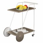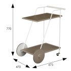 Сервировочный столик Новум добавит яркий акцент в интерьер квартиры или дома. Металлический утонченный каркас каркас обеспечит прочность и устойчивость, а деревянная столешница из МДФ, покрытого плёнкой, гарантирует долгий срок службы. Главной особенностью изделия является сочетание больших и маленьких колёсиков. Вместительная полка позволяет разместить множество вещей, от книг и журналов, до предметов декора. МАТЕРИАЛЫ: МДФ, пленка ПВХ, металл, массив УПАКОВКА: 80*59*7 см, 1 место ВЕС: 7,4 кг Цвет: белый/белый/текстиль темный, белый/серый графит/серый бетон