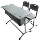 ИНТ-2-1 Стол ученический регулируемый двухместный (Антивандальный Серый пластик)