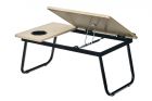 Стол складной с подъемной крышкой и подстаканником – многофункциональный портативный стол-трансформер, который подходит для завтрака в постель, обеда на природе, для комфортной работы с ноутбуком, сидя в любимом кресле или на диване. Складной столик позволяет работать в положении лежа, благодаря чему можно снизить нагрузку на мышцы шеи и спины. Столешница состоит из двух частей: стационарной с подстаканником и подъемной с ограничителями для гаджетов. Регулируемую часть легко установить под необходимым наклоном. Складной столик для ноутбука имеет 4 уровня подъема. Стол-трансформер отличается устойчивостью, благодаря специальным накладкам на металлических складных ножках. Многофункциональный предмет интерьера легко вписывается в любую домашнюю обстановку или становится незаменимым спутником во время отдыха на природе в качестве туристического столика для пикника. ПРЕИМУЩЕСТВА Подходит для работы за ноутбуком, чтения или приема пищи Можно использовать как лежа, так и сидя 4 уровня подъема столешницы Удобная регулировка уровня подъема Специальные ограничители, которые не дадут упасть гаджету Складные металлические ножки Не скользит, благодаря специальным накладкам на ножках Изготовлен из прочных материалов Стильный дизайн Просто складывается и раскладывается Компактный и легкий: можно взять с собой
