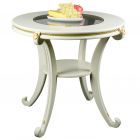 Журнальный стол Глория С выполнен из качественных материалов и отличается надёжностью и прочностью. Ножки тонко декорированы и создают гармоничное сочетание с кромкой стола, обрамленной золотым жгутом, добавляя изысканности и изящности. Круглая столешница со стеклянной вставкой, придаст невероятную легкость и воздушность пространству. Вместительная полочка - удобное место для хранения книг, журналов или других предметов. Создайте уютный уголок для отдыха в доме или квартире вместе с Глорией С. МАТЕРИАЛЫ: МДФ УПАКОВКА: 77*77*13,5 см, 1 место ВЕС: 16 кг Цвет: Молочный дуб,дуб шампань,орех