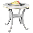 Журнальный стол Глория С выполнен из качественных материалов и отличается надёжностью и прочностью. Ножки тонко декорированы и создают гармоничное сочетание с кромкой стола, обрамленной золотым жгутом, добавляя изысканности и изящности. Круглая столешница со стеклянной вставкой, придаст невероятную легкость и воздушность пространству. Вместительная полочка - удобное место для хранения книг, журналов или других предметов. Создайте уютный уголок для отдыха в доме или квартире вместе с Глорией С. МАТЕРИАЛЫ: МДФ УПАКОВКА: 77*77*13,5 см, 1 место ВЕС: 16 кг Цвет: Молочный дуб,дуб шампань,орех