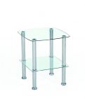 Вес, кг: 6 / Высота (см): 51 / Гарантия, мес.: 12 / Глубина (см): 45 / Количество коробок: 2 / Материал каркаса: металл / Материал столешницы: стекло / Необходимость сборки: да / Раздвижной: нет / Размер упаковки 1: 0,5/0,5/0,05 / Размер упаковки 2: 0,61/0,09/0,12 / Страна производитель: Китай / Форма столешницы: квадрат / Цвет каркаса: хром / Цвет столешницы: прозрачный / Ширина (см): 45