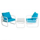Серия SANTORINI - ноухай на рынке РФ, мы представили комплект впервые в 2019 году, какрас комплекта - алюминий (легкий, не подвержен коррозии), легко ухаживать, складной (поставляется в коробках), закаленное стекло на столе.