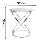 Вес, кг: 8,5 / Высота (см): 56 / Гарантия, мес.: 12 / Глубина (см): 52 / Количество коробок: 1 / Материал каркаса: металл / Материал столешницы: стекло / Необходимость сборки: да / Раздвижной: нет / Размер упаковки 1: 0,59/0,69/0,13 / Страна производитель: Китай / Форма столешницы: круг / Цвет каркаса: хром / Цвет столешницы: прозрачный / Ширина (см): 52