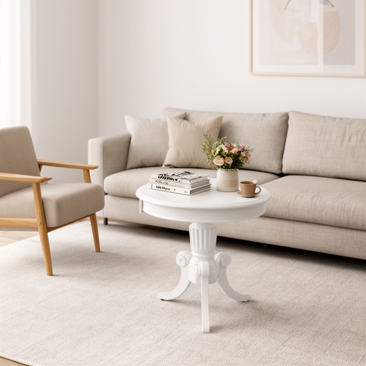Вес, кг: 8,8 / Высота (см): 55 / Гарантия, мес.: 12 / Глубина (см): 60 / Количество коробок: 2 / Материал каркаса: дерево / Материал столешницы: МДФ / Необходимость сборки: да / Раздвижной: нет / Размер упаковки 1: 0,61/0,61/0,09 / Размер упаковки 2: 0,24/0,385/0,165 / Страна производитель: Малайзия / Форма столешницы: круг / Цвет каркаса: белый / Цвет столешницы: белый / Ширина (см): 60