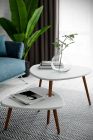 Стол журнальный "Стилгрей" благодаря необычной двойной столешнице смотрится очень стильно и оригинально. Можно преображать интерьер, меняя форму стола. А благодаря широкой цветовой гамме, в том числе и комбинации двух цветовых решений, данный столик сделает ваш интерьер уникальным. Столешницы выполнены из экологичного материала МДФ, облицованного влагостойким декоративным покрытием. Опоры выполнены из дерева.___ Журнальный столик с деревянной столешницей - не только украшение интерьера, но и весьма полезная в повседневной жизни вещь. Имея в своей обстановке журнальный столик, вы сможете хранить на нем тысячу ненужных вещей, сможете его быстро сервировать для нежданных гостей, редко, но сможете использовать его как стол письменный, кухонный, сервировочный, кофейный, или как туалетный столик. Стол журнальный - универсальная вещь. При выборе обратите внимание не только на габаритные размеры, но особенно на высоту. Если он будет стоять около дивана, то это особенно важно. Некрасиво, когда поверхность журнального стола выше сиденья, но и слишком низкие журнальные столики не всегда удобны - придется нагибаться. Сделайте свой выбор, а мы позаботимся о том, чтобы покупка стала для вас приятной. МАТЕРИАЛЫ: МДФ 16 мм УПАКОВКА: 79,5х80,5х5,5 см, 1 место ВЕС: 11,2 кг Цвет: белый, серый лен/бежевый лен