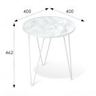 SHT-CT27 – изящная модель журнального столика, который будет удобен и полезен даже в небольшом пространстве. Металлический каркас изделия покрыт порошковой краской, устойчивой к механическому воздействию. Столешница выполнена из металла и толстого стекла с нанесением. Есть вариант столешницы с мраморной текстурой, а также однотонной глянцевой. Столик будет украшением интерьера в лофт, современном стилях. Можно использовать модель как сервировочный, чайный, кофейный столик. МАТЕРИАЛЫ: металл, стекло УПАКОВКА: 46,5x42х10 см, 1 место ВЕС: 4,25 кг Цвет: белый муар/белый мрамор