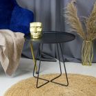 Многофункциональный журнальный столик SHT-CT42– идеальное сочетание стиля и практичности. Маленький столик легко поднять и перенести благодаря его удобной ручке и легкому весу в любое место дома или квартиры. Это делает его идеальным выбором для тех, кто ценит мобильность и функциональность. Бортик по краю столешницы предотвращает падение и соскальзывания предметов. Металлический каркас и столешница окрашены порошковой краской, что гарантирует долговечность и устойчивость к механическим повреждениям. МАТЕРИАЛЫ: металл УПАКОВКА: 47x46х17,5см, 1 место ВЕС: 3,32 кг Цвет: черный муар/черный