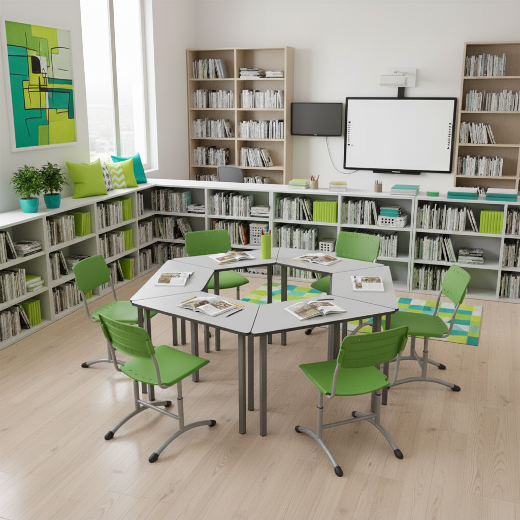 Сиденья и спинка выполнены из пластика. Форма сиденья и спинки способствует сохранению осанки. Соединения каркаса с пластиковым сиденьем осуществляется спомощью 2-х винтов М6, спинка плотно надевается на каркас без дополнительного крепления. Стул изготавливается в двух ростовых группах в трёх диапазонах регулирования (3-5, 5-7) в соответствии с ГОСТ 11016-93 (ИСО 5970-79).