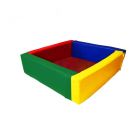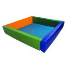 Сухой бассейн представляет собой мягкое изделие, состоящее из 4-х модулей и дна, чехлы которых сшиты из винилискожи и имеющих наполнитель поролон (ППУ), соединения модулей и дна выполнены из прочных липучек велькро для обеспечения безопасности детей при играх в нем. Для комфортного и долговечного использования, сухой бассейн оснащен молнией со скрытыми замками для удобного монтажа или демонтажа наполнителя в случае необходимости.