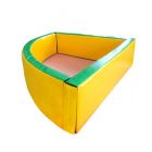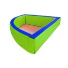 Сухой бассейн представляет собой мягкое изделие, состоящее из 3-х модулей и дна, чехлы которых сшиты из винилискожи и имеющих наполнитель поролон (ППУ), соединения модулей и дна выполнены из прочных липучек велькро для обеспечения безопасности детей при играх в нем. Для комфортного и долговечного использования, сухой бассейн оснащен молнией со скрытыми замками для удобного монтажа или демонтажа наполнителя в случае необходимости.