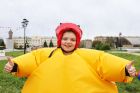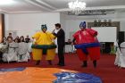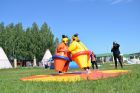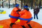 Правила игры: два участника облачаются в костюмы, надевает шлемы, выходят на татами, по сигналу судьи поединок начинается. Задача вытолкнуть соперника за пределы ковра.