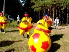 Правила игры: 6 участников делятся на две команды, задача — завладеть мячом и забить гол. Огромный мяч и неуклюжие костюмы усложняют игру, даже если вы виртуозно владеете мячом.