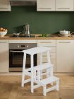 Высокий табурет (обратите внимание на высоту сиденья в характеристиках), одновременно и небольшая стремянка на три ступени. Вещь незаменимая в современных кухнях. Высоко расположенные вместительные навесные ящики часто оказываются недоступными для домохозяек именно из-за высоты. Даже обычного табурета иногда не хватает для того, чтобы дотянуться до нужных вещей на верхних полках. Стремянка в разобранном виде позволяет достать рукой до потолка в квартире человеку даже не самого большого роста. В собранном виде – дополнительное место для сидения и не бросается в глаза. Несколько вариантов цветов позволяют подобрать наиболее подходящий в вашу кухню. Каркас из натурального дерева делает стремянку легкой и прочной. Отличное приобретение, может служить подарком хозяйке. МАТЕРИАЛЫ: массив УПАКОВКА: 61,5*33*10 см, 1 место ВЕС: 7,2 кг Цвет: бук, венге, лак, орех, снег