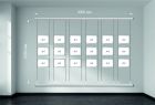 Профиль алюминиевый серебро 3м - 2шт., шайбы для крепления профиля к стене 12 шт, торцовые заглушки на профиль, цвет серый - 4шт, трос 2м - 12шт., держатели кармана из оргстекла - 72шт, зажим троса 24шт (нагрузка 2кг), натяжитель троса - 12шт., карманы А4 двойное прозрачное оргстекло 2мм - 18шт