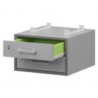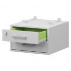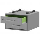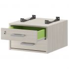 Тумбы Толщина ДСП каркасов, мм: 18 Кромка на каркасах, мм: 2, АВС Задняя стенка (мобильные тумбы): ЛДСП, 18 мм Задняя стенка (приставные тумбы): ЛДСП, 18 мм Стенки ящиков (кроме АТ-10): ЛДСП , 16мм цвет лайм Дно ящика: ЛХДФ Замок: На верхний ящик, на всех тумбах, на тумбах-купе-центральный Толщина ДСП лицевых панелей, мм: 18 Кромка на лицевых панелях ящиков, мм: 0,4 Толщина топа, мм: 22 Кромка топа, мм: 2, АВС Диаметр колес, мм: 40