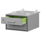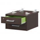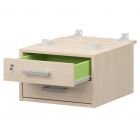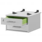 Тумбы Толщина ДСП каркасов, мм: 18 Кромка на каркасах, мм: 2, АВС Задняя стенка (мобильные тумбы): ЛДСП, 18 мм Задняя стенка (приставные тумбы): ЛДСП, 18 мм Стенки ящиков (кроме АТ-10): ЛДСП , 16мм цвет лайм Дно ящика: ЛХДФ Замок: На верхний ящик, на всех тумбах, на тумбах-купе-центральный Толщина ДСП лицевых панелей, мм: 18 Кромка на лицевых панелях ящиков, мм: 0,4 Толщина топа, мм: 22 Кромка топа, мм: 2, АВС Диаметр колес, мм: 40