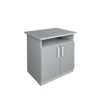 В конструкции тумбы предусмотрена ниша высотой 140 мм, полка с возможностью регулировки по высоте с шагом 32 мм. Тумба устанавливается на пластиковые подпятники. На фасады устанавливаются металлические хромированные матовые ручки 160 мм.
