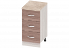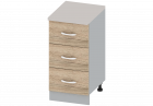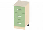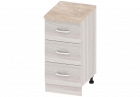 Размер (ШхВхГ): 400х850х500 мм. Три выдвижных ящика. Столешница 26 мм, постформинг. Без завала. Материал: Корпус ЛДСП 16 мм. Фасады ЛДСП Кромка ПВХ 0,4 и 2 мм.