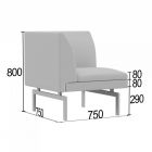 Каркас:Каркас кресла выполнен из высококачественных материалов: калиброванный брус из массива хвойных пород древесины (влажность 8-12%), фанера толщиной 10-15 мм, ДСП 16 мм, влагостойкий ДВП 3,2 мм и прессованный картон 1,75 мм. Соединения выполнены с использованием каркасных пневмопистолетов и специальных скоб с клеем, что обеспечивает прочность и долговечность конструкции.Чехол:Чехол изготавливается по точным лекалам из высокопрочных материалов. Пошив выполняется на современных колонковых швейных машинках с тройным продвижением, что гарантирует идеально ровные швы. Компенсирующая лапка со встроенным направителем обеспечивает равномерное натяжение ниток.Наполнитель:Сиденье: пенополиуретан толщиной 20-30 мм, плотность 25 кг/м?, жесткость 3,6 Кпа. Обивка дна выполнена из технической ткани спанбонд 100 г/м?.Спинка: пенополиуретан толщиной 10-30 мм.Подлокотники: пенополиуретан толщиной 10-20 мм.Опоры:Металлические трубы черного цвета, высота 290 мм и 690 мм (барная версия). Регулировки высоты нет, крепление выполнено с помощью накладной площадки.Упаковка:Кресло упаковано в спанбонд, пленекс, двухслойный картон и полиэтиленовую пленку. Используется одноразовый фирменный скотч для предотвращения несанкционированной переупаковки.Максимальная нагрузка:До 120 кг на одно посадочное место.ЭРГОНОМИКА ПОСАДКИ-КОМФОРТ ; К СТОЛУ h-750мм