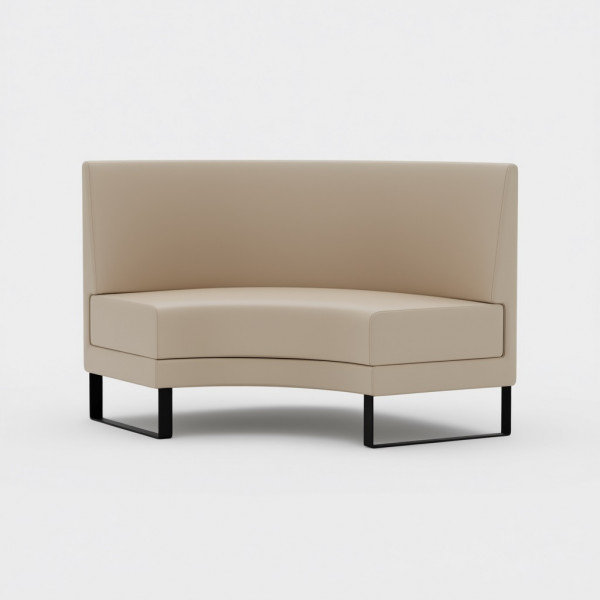 КаркасКаркас выполнен из калиброванного бруса 30х40 мм из массива хвойных пород древесины с влажностью 8-12%. Для усиления конструкции используются фанера толщиной 10 мм и 15 мм, ДСП 16 мм, влагостойкий ДВП 3,2 мм и прессованный картон 1,75 мм. Соединения осуществляются с помощью каркасных пневмопистолетов и каркасной скобы 50 мм с клеем, что обеспечивает высокую прочность и надежность.ЧехолЧехол изготавливается по точным лекалам из высокопрочных материалов. Пошив выполняется на колонковых одно- и двухигольных швейных машинках с тройным продвижением, что гарантирует ровность швов. Компенсирующая лапка со встроенным направителем середины шва обеспечивает стабильную натяжку ниток и равномерное расстояние между строчками.СиденьеСиденье оснащено наполнителем из пенополиуретана толщиной 10 мм, 20 мм, 30 мм и 80 мм (подушка). Используется пенополиуретан ST2536 плотностью 25 кг/м? и жесткостью 3,6 кПа. Обивка дна выполнена из технической ткани спанбонд плотностью 100 г/м?.СпинкаСпинка имеет наполнитель из пенополиуретана толщиной 10 мм и 30 мм, также плотностью 25 кг/м? и жесткостью 3,6 кПа.ОпорыОпоры черного цвета выполнены из металлической полосы. Высота опор составляет 170 мм. Регулировка высоты отсутствует. Тип крепления — накладная площадка, монтаж не требуется.УпаковкаУпаковка включает спанбонд 17, пленекс, двухслойный картон и полиэтиленовую пленку. Используется одноразовый фирменный скотч для предотвращения несанкционированной переупаковки.Допустимая нагрузкаМаксимальная нагрузка на одно посадочное место составляет до 120 кг.
