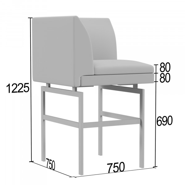 Каркас:Каркас кресла выполнен из высококачественных материалов: калиброванный брус из массива хвойных пород древесины (влажность 8-12%), фанера толщиной 10-15 мм, ДСП 16 мм, влагостойкий ДВП 3,2 мм и прессованный картон 1,75 мм. Соединения выполнены с использованием каркасных пневмопистолетов и специальных скоб с клеем, что обеспечивает прочность и долговечность конструкции.Чехол:Чехол изготавливается по точным лекалам из высокопрочных материалов. Пошив выполняется на современных колонковых швейных машинках с тройным продвижением, что гарантирует идеально ровные швы. Компенсирующая лапка со встроенным направителем обеспечивает равномерное натяжение ниток.Наполнитель:Сиденье: пенополиуретан толщиной 20-30 мм, плотность 25 кг/м?, жесткость 3,6 Кпа. Обивка дна выполнена из технической ткани спанбонд 100 г/м?.Спинка: пенополиуретан толщиной 10-30 мм.Подлокотники: пенополиуретан толщиной 10-20 мм.Опоры:Металлические трубы черного цвета, высота 290 мм и 690 мм (барная версия). Регулировки высоты нет, крепление выполнено с помощью накладной площадки.Упаковка:Кресло упаковано в спанбонд, пленекс, двухслойный картон и полиэтиленовую пленку. Используется одноразовый фирменный скотч для предотвращения несанкционированной переупаковки.Максимальная нагрузка:До 120 кг на одно посадочное место.ЭРГОНОМИКА ПОСАДКИ-КОМФОРТ ; К СТОЛУ h-750мм